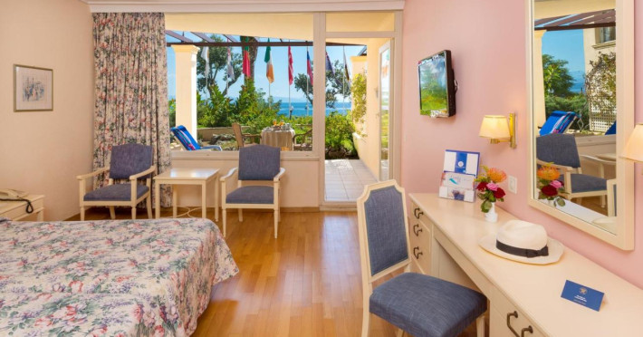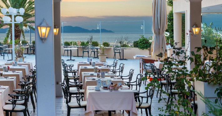 Este situat la marginea orasului istoric Corfu cu vedere la golful Garitsa, fiind situat la doar 400 m de centrul orasului. Dispune de sala de conferinte, piscina exterioara cu apa sarata, bar la piscina, gradina tropicala, piscina interioara cu apa sarata, Spa, rerstaurant bufet si a la carte, bar in gradina.Datorita dinamicitatii domeniului disponibilitatea ofertelor se modifica de la un moment la altul. De aceea ofertele sunt valabile in limita locurilor disponibile. Agentia nu este responsabila pentru eventualele neconcordante care pot aparea intre informatiile privind tarifele si alte detalii din site si informatiile primite in agentie. In aceste cazuri vor avea prioritate, intotdeauna, informatiile primite in agentie.