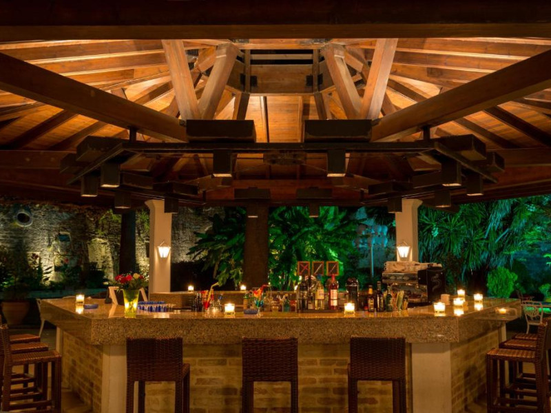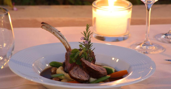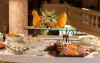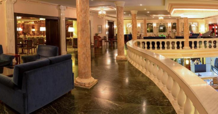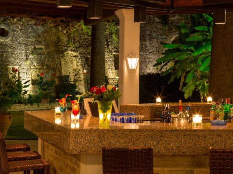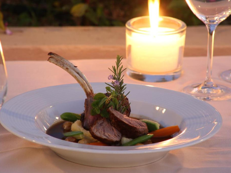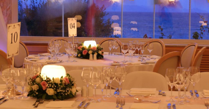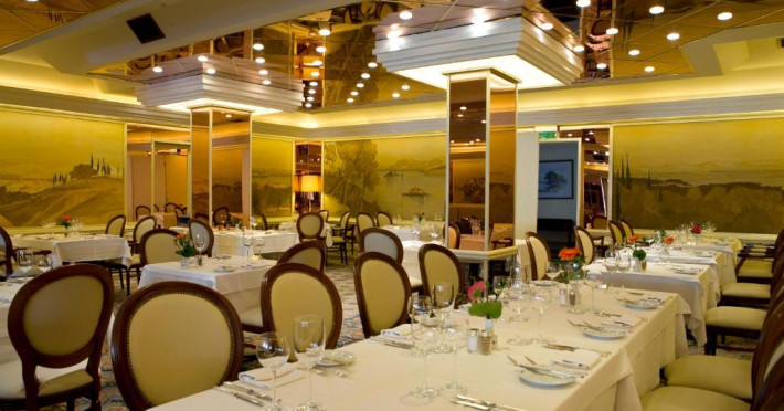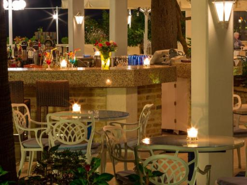Un mic dejun tip bufet bogat este servit la restaurantul principal, mobilat cu scaune in stil Ludovic al XV-lea. Restaurantul a lacarte Scheria oferă meniuri internaționale. Oaspeții pot savura o băutură la unul dintre cele 2 baruri interioare sau la barul Café Del Mare de langă piscină.