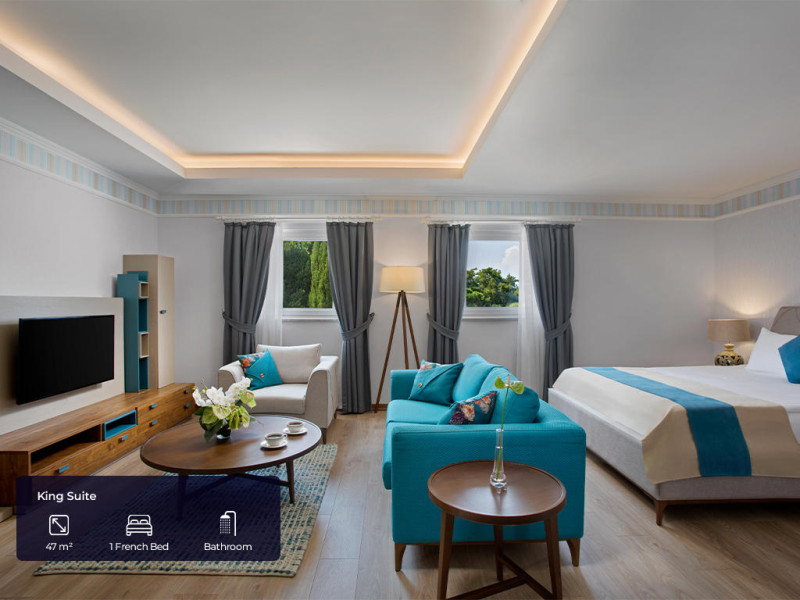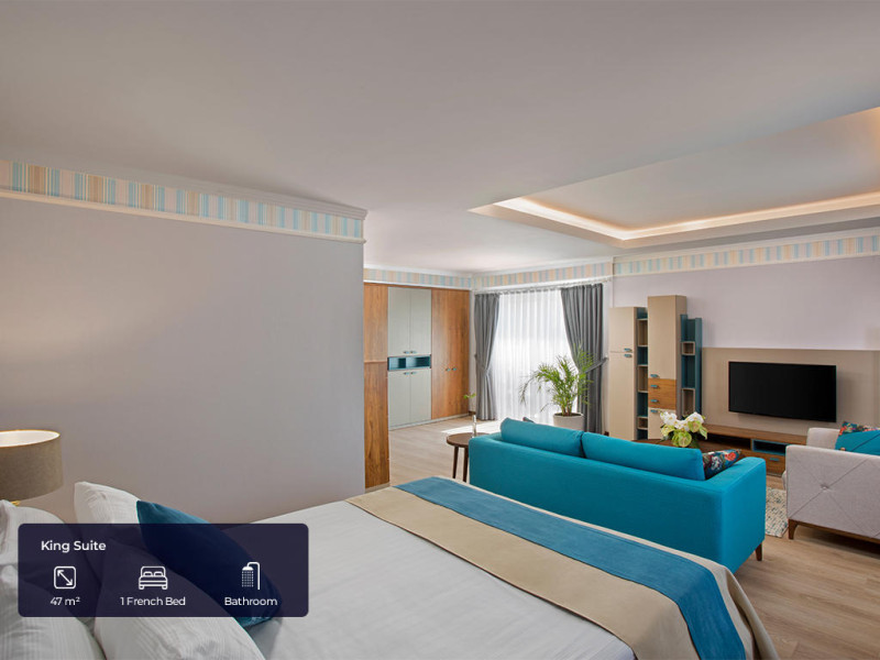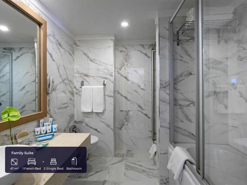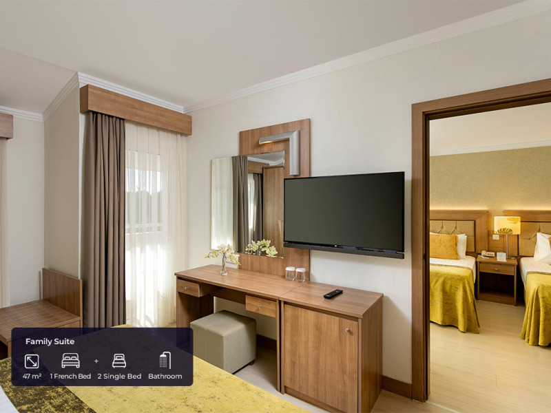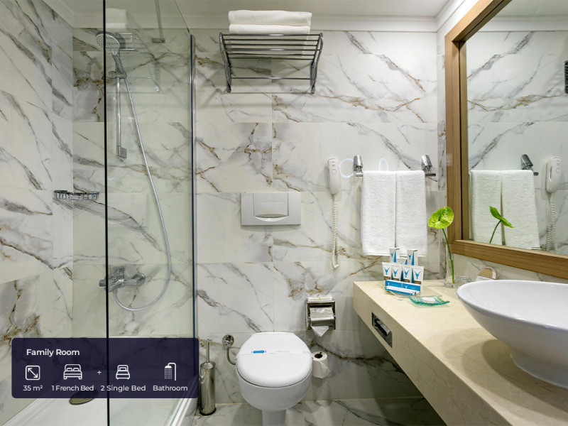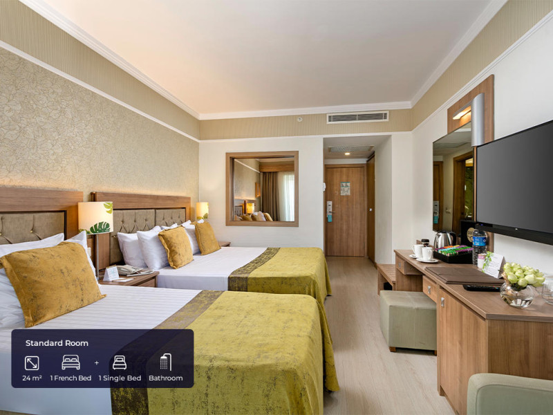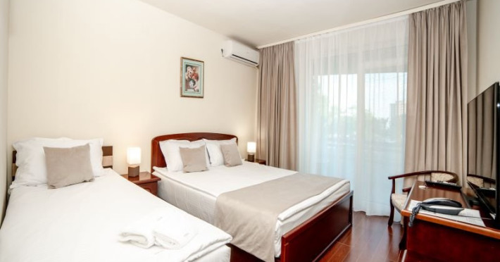 Pat suplimentar: se poate introduce un singur pat pliabil in camerele duble standard cu balcon mare. Intr-o camera dubla se pot caza maxim 3 adulti; al treilea adult achita 90% din tariful unui loc de cazare, cu pat suplimentar.