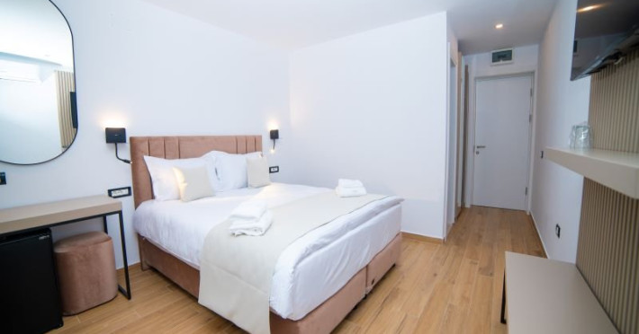 Camerele duble deluxe, renovate in 2021, sunt dotate cu pat matrimonial (160x220 cm), baie proprie, uscator de par, geam termopan cu plasa pentru insecte, aer conditionat, TV. Camerele deluxe sunt situate la parter sau la etajul 1, iar cele de la parter au terasa.
