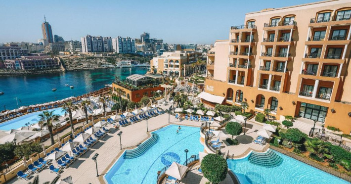 Corinthia este un hotel de 5 stele, situat chiar pe malul apei, in golful St. George, și are centru spa și 5 piscine amplasate pe terasele de lux, cu vedere la mare. Oaspeții beneficiază de WiFi gratuit in toată proprietatea.