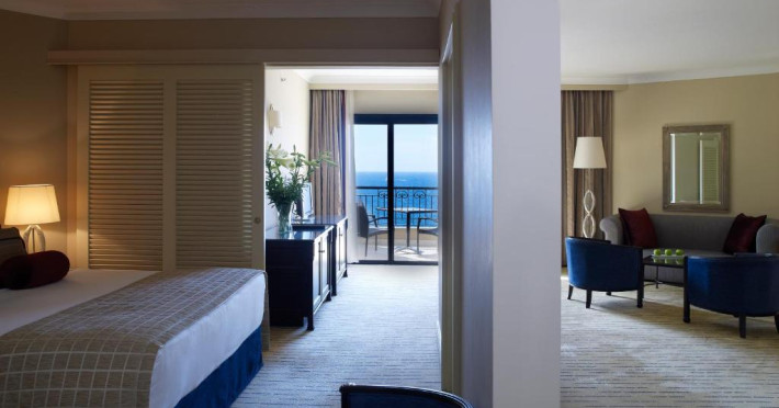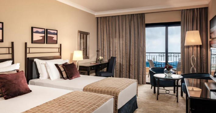Camerele spațioase de la Hotelul Corinthia St. George’s Bay au aer condiționat și un balcon mare. Cele mai multe camere oferă vedere la mare.