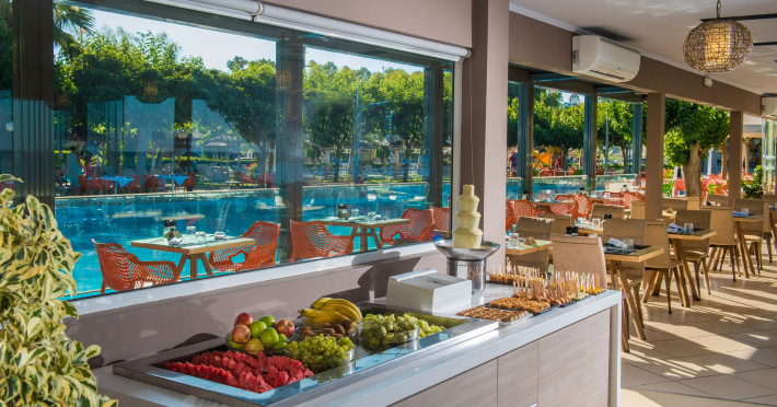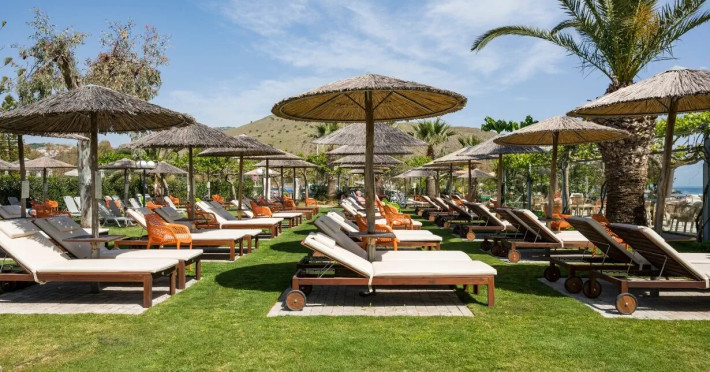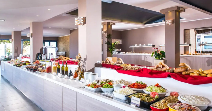 Corissia Park offers guests a large freshwater swimming pool, pool bar, sun loungers and parasols. All set in an oasis of manicured lawns, flowers and towering eucalyptus trees, yet just steps away from the beach. Guests can also enjoy personalized facials and massages in specially designed spa areas that help relax and rejuvenate the body and bring peace to the mind and soul. Complimentary high-speed Internet access is available throughout the property. All areas of the hotel are easily accessible to guests with mobility impairments. The construction and all the technical equipment meet the most modern requirements in terms of quality of stay and comfort: thermal insulation, individually adjustable air conditioning with heat pump/geothermal energy, special ventilation filters, solar system, etc. The rooms at Corissia Beach, located in various buildings throughout the idyllic village, are cozy and very comfortable: beautiful double and triple rooms, newly renovated rooms to the highest standards, as well as connected family rooms and spacious two-room apartments, perfect for families. The central part of the hotel is Corissia Park, a beautifully landscaped area right by the sea, where guests can enjoy full buffet breakfast and buffet dinner.