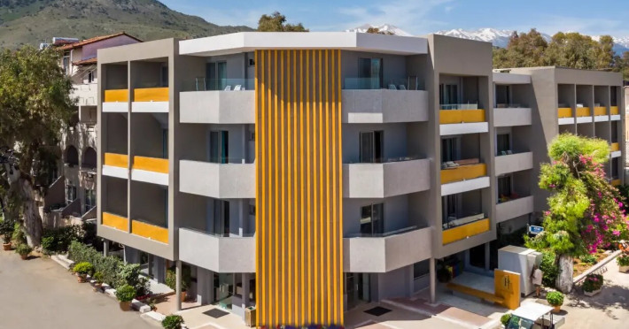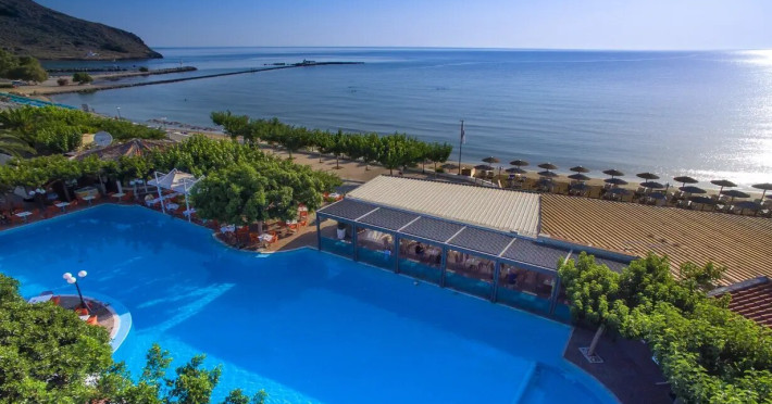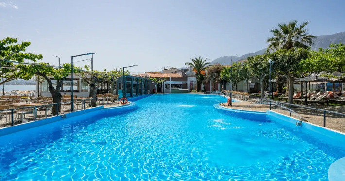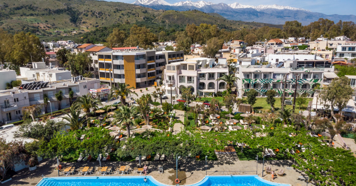 Beautifully located in an idyllic bay with the longest and most beautiful sandy beach in Crete, the newly renovated mid-range hotel consists of several buildings spread throughout the idyllic village of Georgioupolis, Crete, Greece. All enjoy a quiet but central location, within walking distance of the charming village square and long sandy beach, and are an ideal base for exploring the beautiful and varied surrounding countryside. The cities of Chania and Rethymno are not far away. Georgioupolis is located about 38 km east of Chania and about 23 km west of Rethymno.