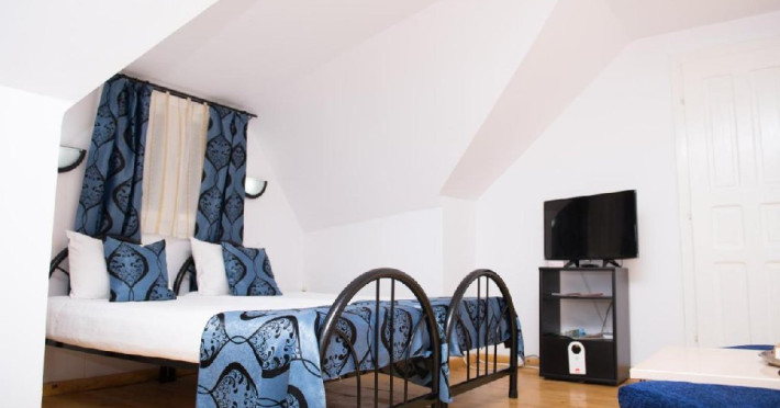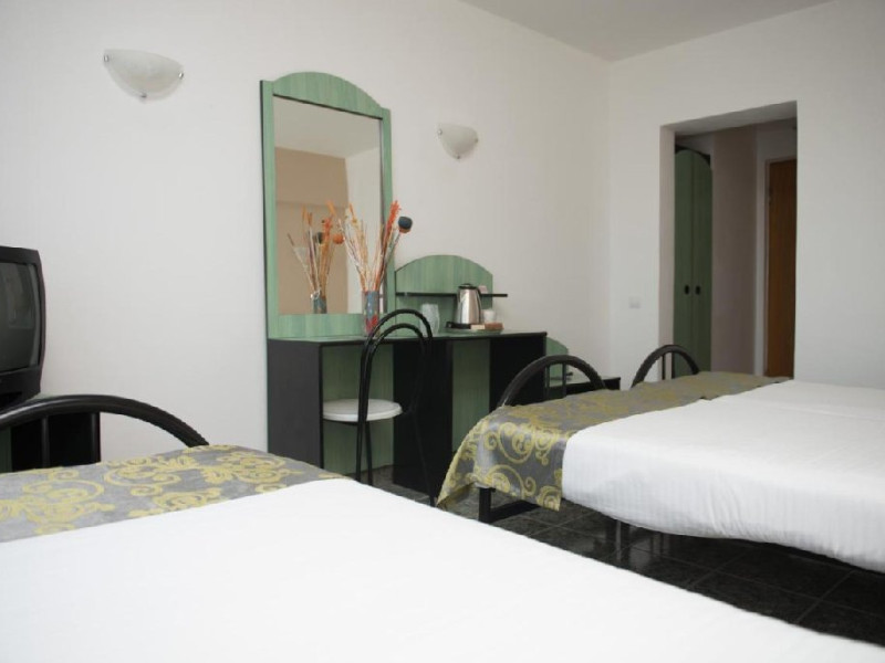 Vile Tip A: 10 vile, dotare 3 stele. Fiecare vila are 4 camere cu intrare separata, 2 camere situate la parter, iar 2 la etaj. Vilele 1, 3, 4, 5 au terasa exterioara cu masa si bancute doar la parter, camerele de la etaj nu au terasa sau balcon. Vilele 2, 11, 12, 13, 14, 15 au terasa exterioara cu masa si bancute atat la parter, cat si la etaj. Toate camerele sunt dotate cu aer conditionat, TV, grup sanitar, frigider.