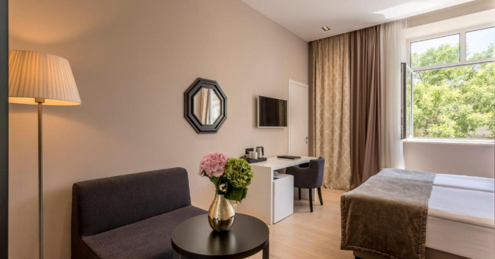 Toate camerele moderne ale hotelului au TV cu ecran plat cu canale prin satelit, aer conditionat, zonă de relaxare, minibar si vedere la oras. Unele camere includ o tabletă. Băile au cabină de dus.