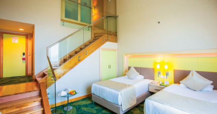 Camerele ofera un interior modern, toate au o zona de relaxare, o baie cu cada, uscator de par, halat, papuci, fructe (in ziua sosirii), aer conditionat centralizat, televizor, telefon, minibar (bauturi racoritoare si bere - se suplimenteaza zilnic, gratuit), seif, internet WiFi.