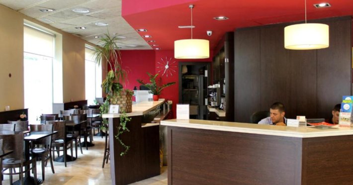 A pleasant and comfortable lobby welcomes guests, along with a relaxation area with vending machines, a bar, and a reception desk.