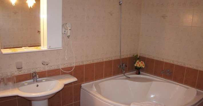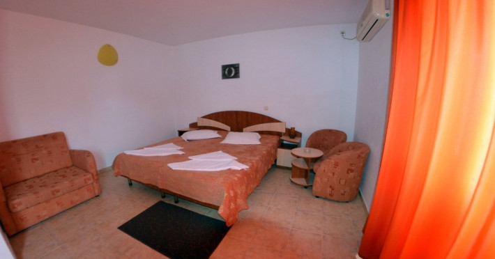 Camerele duble cu o suprafata de 18mp, au in dotare baie proprie cu dus, TV, aer conditionat telefon, frigider, balcon.