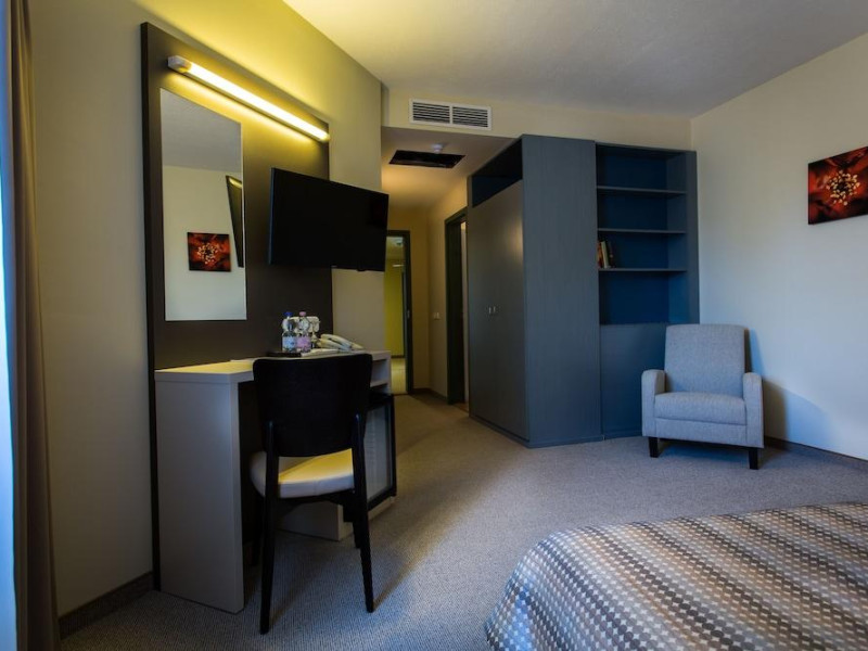 Corvin Hotel is situated a few minutes walk from the city center, in the residential area, close to the River Danube. It is a hotel with familiar atmosphere that offers security parking. It has 42 rooms and 5 apartments with kitchen. The rooms have air-conditioning and heating, non-smoking rooms and include phone, TV, security safe, fridge, free WI-FI, buffet breakfast and other services.Datorita dinamicitatii domeniului disponibilitatea ofertelor se modifica de la un moment la altul. De aceea ofertele sunt valabile in limita locurilor disponibile. Agentia nu este responsabila pentru eventualele neconcordante care pot aparea intre informatiile privind tarifele si alte detalii din site si informatiile primite in agentie. In aceste cazuri vor avea prioritate, intotdeauna, informatiile primite in agentie.