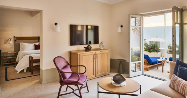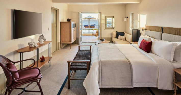 Toate camerele de la Cosme, a Luxury Collection Resort, Paros au balcon privat, televizor și minibar.