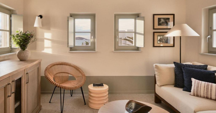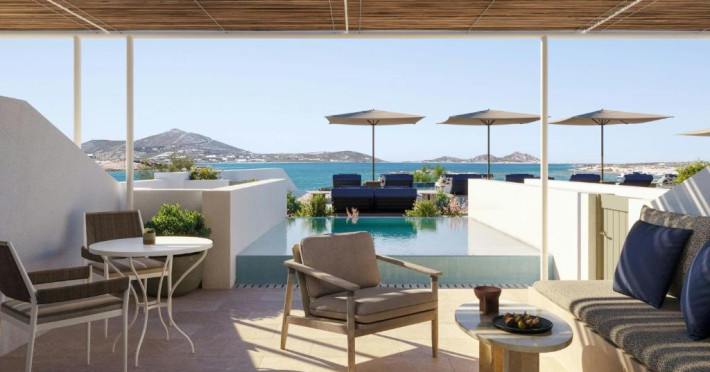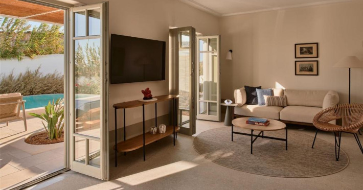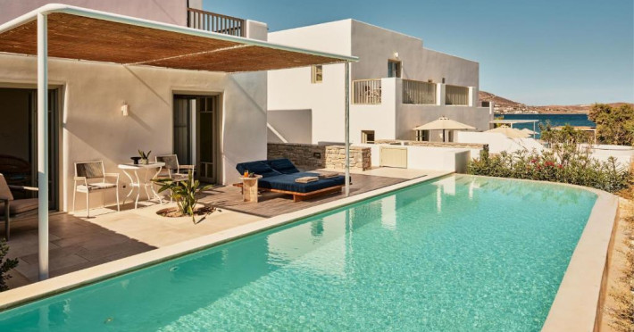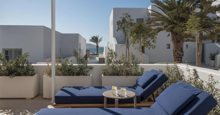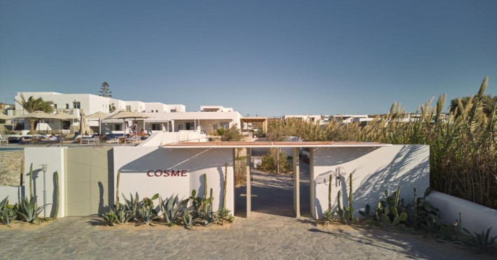 Situat chiar pe plaja din Agii Anargyri, la doar 10 minute de mers pe jos de centrul orașului Naoussa, Cosme, a Luxury Collection Resort, Paros oferă cazare tradițională in stil cicladic in Paros.
