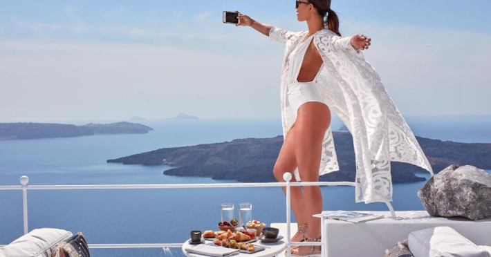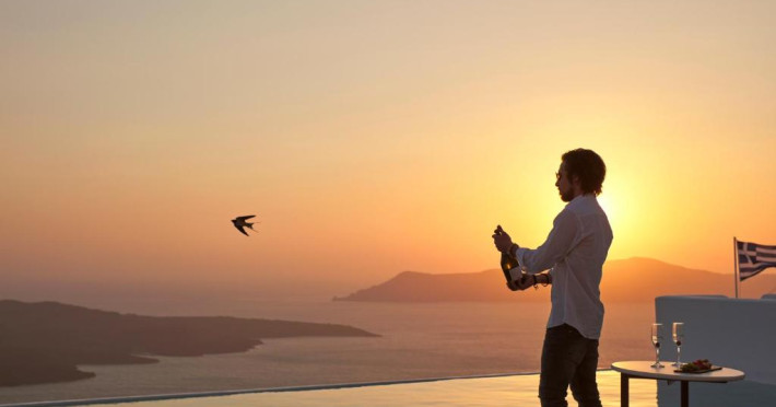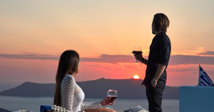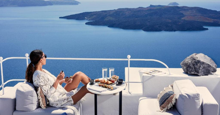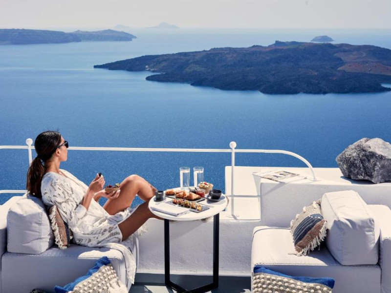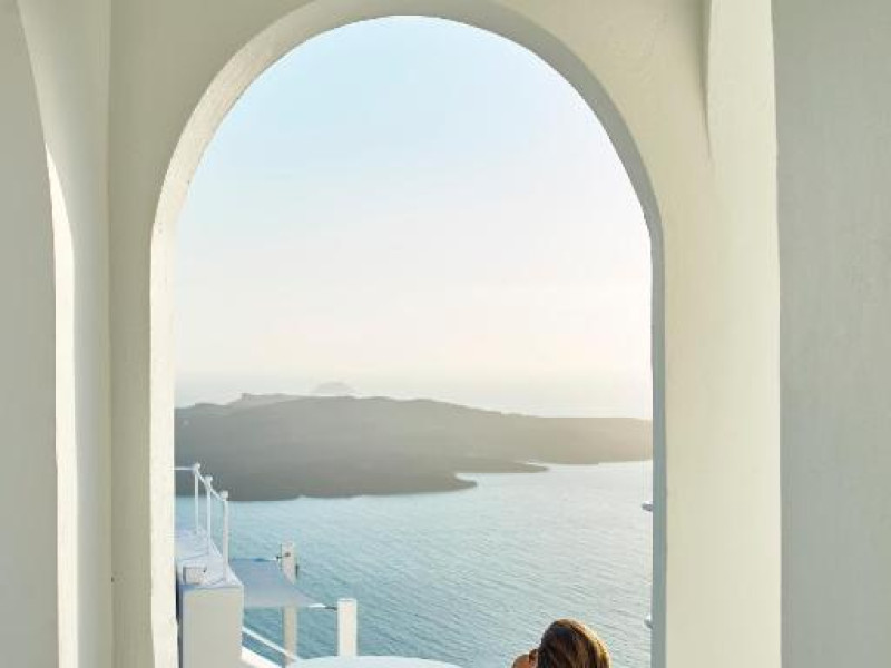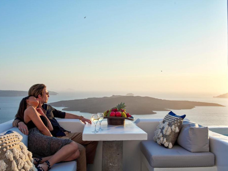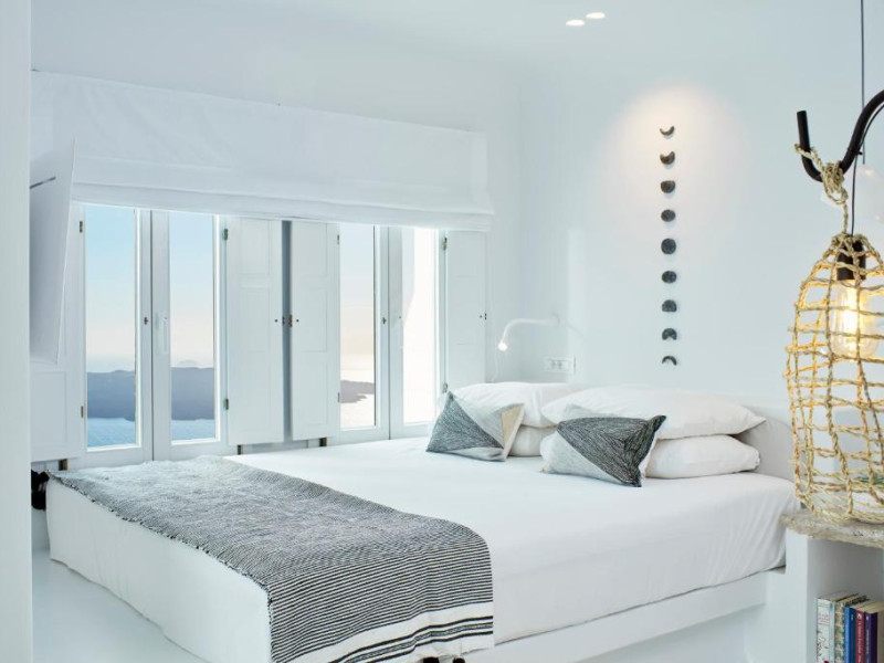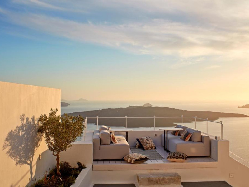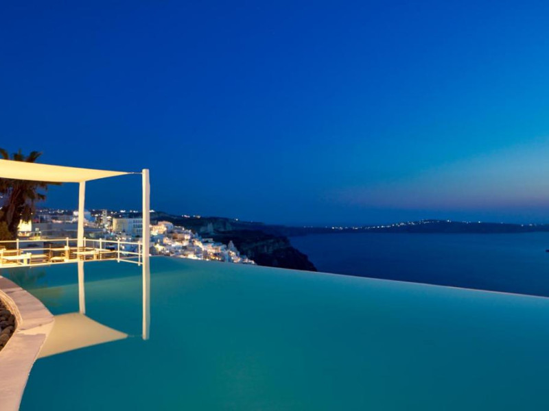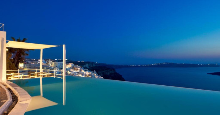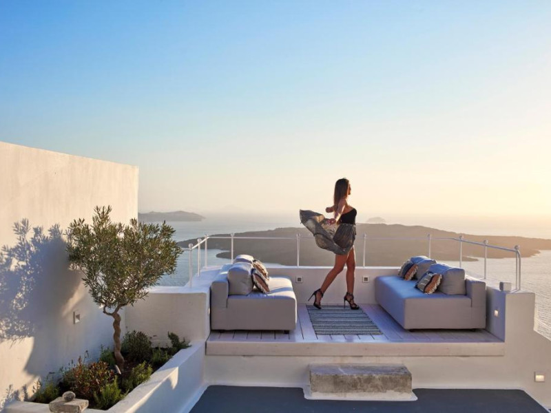 Acest hotel elegant din Fira, capitala insulei Santorini, beneficiază de o locatie maiestuoasă pe o stancă, cu vedere magnifică la mare.