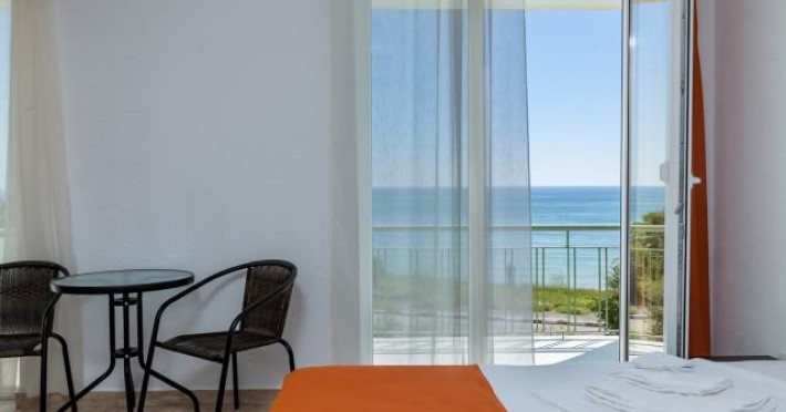 Camera dubla cu vedere la mare dispune 14 m2 avand un dormitor cu pat matrimonial. Aceasta camera are o capacitate de cazare de 2 persoane oferind: baie proprie, aer conditionat, balcon, masa si scaune pentru balcon, televizor; frigider; Wi-fi. Vedere de 180 de grade asupra Marii Negre.