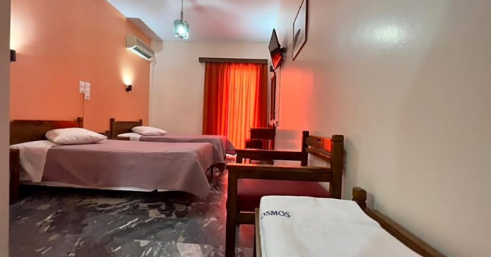 Youll be sleeping tight! Hotel Cosmos Hotel is located in Athens. This hotel is located 1 km from the city center. You can take a walk and explore the neighbourhood area of the hotel. Places nearby: Metaxourghio, Athens Central Market and National Archaeological Museum of Athens.Youll be sleeping tight! Hotel Cosmos Hotel is located in Athens. This hotel is located 1 km from the city center. You can take a walk and explore the neighbourhood area of the hotel. Places nearby: Metaxourghio, Athens Central Market and National Archaeological Museum of Athens.Free Wi-Fi is available on the territory. Ask for more information when checking in. If you travel by car, you can park in a parking zone. To book an excursion, consult the tour assistance desk of the hotel. Accessible for guests with disabilities: the elevator helps them to go to the highest floors.There are other services available for the guests of the hotel. For example, car rental, a safe-deposit box and a concierge. The staff of the hotel will be happy to talk to you in English.Free Wi-Fi is available on the territory. Ask for more information when checking in. If you travel by car, you can park in a parking zone. To book an excursion, consult the tour assistance desk of the hotel. Accessible for guests with disabilities: the elevator helps them to go to the highest floors.There are other services available for the guests of the hotel. For example, car rental, a safe-deposit box and a concierge. The staff of the hotel will be happy to talk to you in English.Heres what youll find in the room to have a rest after a long day: a shower, a TV and slippers. The room equipment depends on its category.Heres what youll find in the room to have a rest after a long day: a shower, a TV and slippers. The room equipment depends on its category. NATIONAL RATING For the benefit of our customers, we have provided a rating based on our rating system. For the benefit of our customers, we have provided a rating based on our rating system. KNOW BEFORE YOU GO * Cash transactions at this property cannot exceed EUR 500, due to national regulations. For further details, please contact the property using information in the booking confirmation. * Only registered guests are allowed in the guestrooms. * Cash transactions at this property cannot exceed EUR 500, due to national regulations. For further details, please contact the property using information in the booking confirmation. * Only registered guests are allowed in the guestrooms. FEES The following fees and deposits are charged by the property at time of service, check-in, or check-out. The following fees and deposits are charged by the property at time of service, check-in, or check-out. * Nearby parking fee: EUR 10 per 24 hours * A pet fee will be charged * Nearby parking fee: EUR 10 per 24 hours * A pet fee will be charged The above list may not be comprehensive. Fees and deposits may not include tax and are subject to change. The above list may not be comprehensive. Fees and deposits may not include tax and are subject to change. MANDATORY FEES AND TAXES Youll be asked to pay the following charges at the property: Youll be asked to pay the following charges at the property: * Tourism fee: EUR 0.50 per accommodation, per night * Tourism fee: EUR 0.50 per accommodation, per night We have included all charges provided to us by the property. However, charges can vary, for example, based on length of stay or the room you book. We have included all charges provided to us by the property. However, charges can vary, for example, based on length of stay or the room you book.Datorita dinamicitatii domeniului disponibilitatea ofertelor se modifica de la un moment la altul. De aceea ofertele sunt valabile in limita locurilor disponibile. Agentia nu este responsabila pentru eventualele neconcordante care pot aparea intre informatiile privind tarifele si alte detalii din site si informatiile primite in agentie. In aceste cazuri vor avea prioritate, intotdeauna, informatiile primite in agentie.