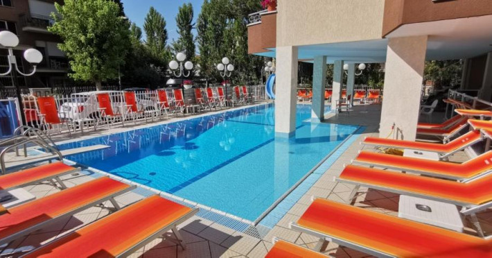 Situated in Rimini, 300 metres from Bradipo Beach, Hotel Cosmos features accommodation with a restaurant, free private parking, free bikes and a bar. Among the facilities at this property are a kids' club and a shared lounge, along with free WiFi throughout the property. The hotel offers an outdoor swimming pool, evening entertainment and a 24-hour front desk.