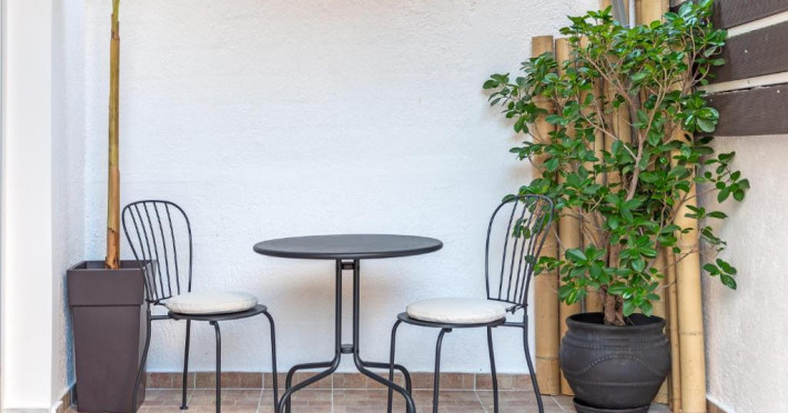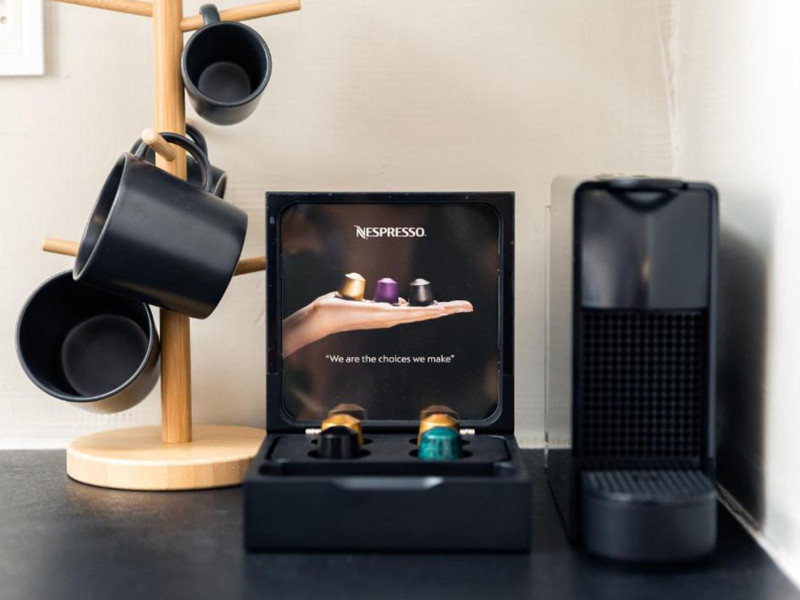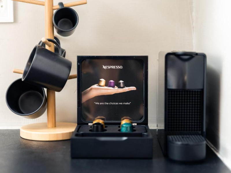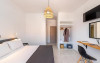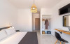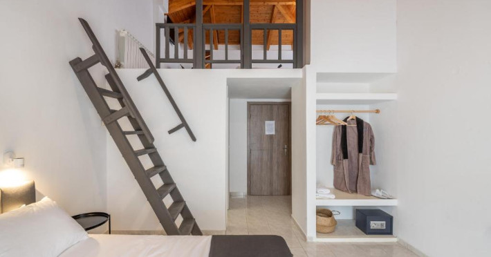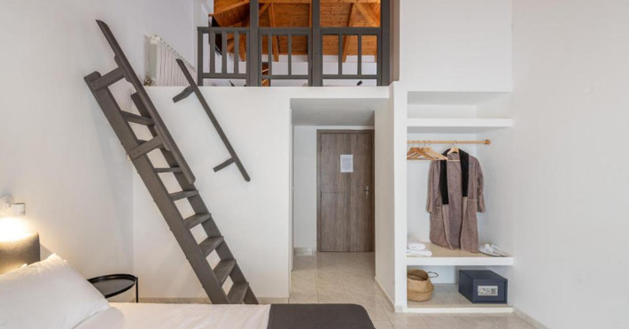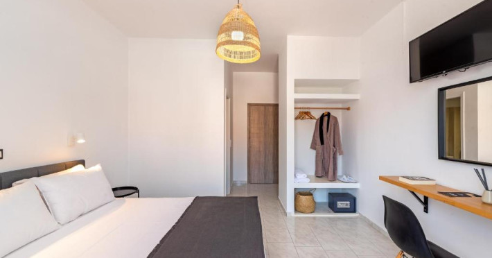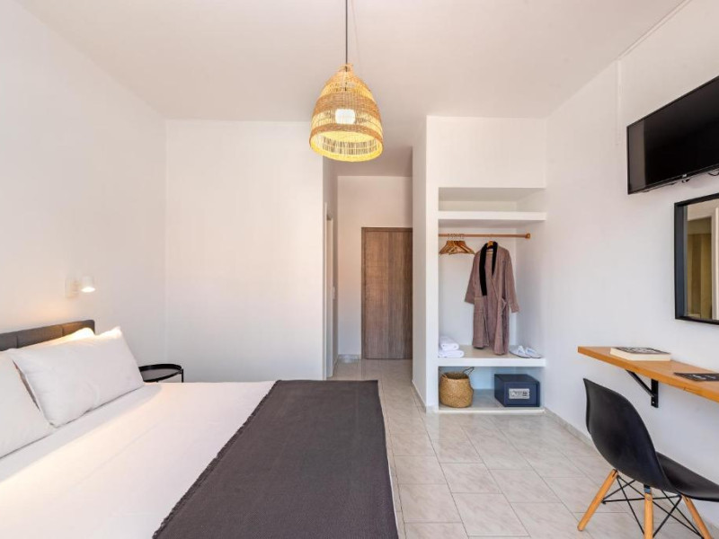 În camere există un aparat de aer condiționat. În majoritatea spațiilor de cazare clienții beneficiază de vedere spre mare de pe balcon sau de pe terasă. În chicinetă pot fi preparate mici gustări. Echiparea este completată de un telefon, un televizor și WiFi (contra cost). În baia dotată cu un duș și o cadă dispune de un uscător de păr.