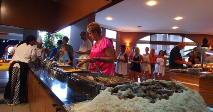 La Cosmopolitan Resort Hotel oaspeții au la dispoziție 2 restaurante unde pot savura mâncăruri delicioase, în stil bufet sau à la carte. Preparate din bucătăria internațională așteaptă să fie degustate în fiecare zi la micul dejun, prânz și cină. Masa poate fi servită atât în interior, cît si în aer liber, pe terasă, în funcție de vreme. Oaspeţii pot avea diverse băuturi răcoritoare sau alcoolice la bar. De asemenea , în cadrul proprietății, există cafenea și snack bar ideale pentru o gustare rapidă.