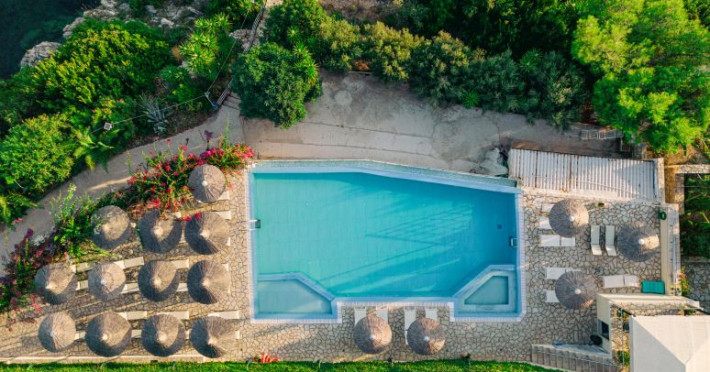 The hotel offers modern and functional rooms with balconies with breathtaking views of the Ionian sea. It is a preferered choice for couples and families.