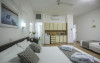 Camerele au balcon cu vedere la mare sau la oraș, unde oaspeții pot admira apusul sau răsăritul soarelui. Fiecare cameră dispune de cană-fierbător. În camere există baie cu cadă și articole de toaletă gratuite. Camerele confortabile de la Costantiana Beach Hotel Apartments au pardoseală de gresie/ marmură, aer condiționat, Tv cu canale prin satelit și seif. Oaspeții au acces gratuit la serviciul Wi-fi în camere. Toate camerele spațioase de la Costantiana Beach Hotel Apartments au zonă de relaxare cu canapea, ceea ce oferă un plus de confort. Fiecare unitate de cazare include o chicinetă utilată cu frigider, plită de gătit și ustensile de bucătărie. De asemenea, este disponibilă o zonă de luat masa. Proprietatea oferă camere pentru familie cu o suprafață mai mare și un număr mai mare de paturi față de cele standard. Se pot rezerva de asemenea camere pentru nefumători.
