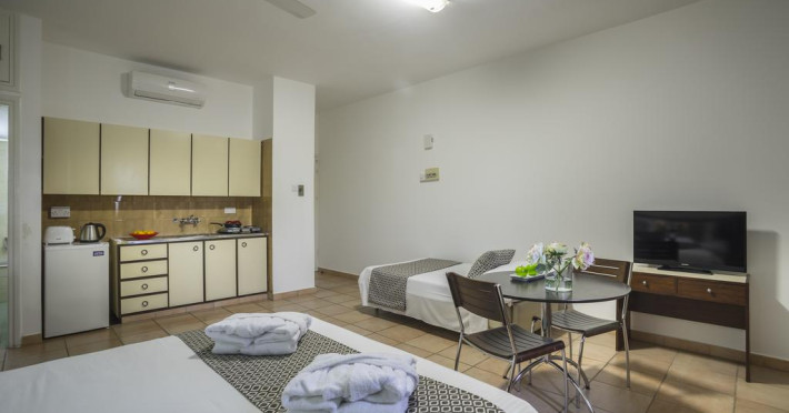 All studios and apartments of Constantiana have a seating area and a kitchenette with fridge and cooking hobs. Each unit is equipped with air conditioning, a TV and a private bathroom with shower. Some units open out to a balcony. Guests can start their day with a continental breakfast served daily at the dining area. Drinks and light meals can also be enjoyed at the modernly decorated snack bar, while restaurants and shops are within a short walk. The centre of Larnaca is situated 4.5 km from Costantiana Beach Hotel Apartments and Larnaca International Airport is at 4 km. The lively Ayia Nappa Resort is 55 km away. Car rental services can be provided and free public parking is possible nearby.All studios and apartments of Constantiana have a seating area and a kitchenette with fridge and cooking hobs. Each unit is equipped with air conditioning, a TV and a private bathroom with shower. Some units open out to a balcony. Guests can start their day with a continental breakfast served daily at the dining area. Drinks and light meals can also be enjoyed at the modernly decorated snack bar, while restaurants and shops are within a short walk. The centre of Larnaca is situated 4.5 km from Costantiana Beach Hotel Apartments and Larnaca International Airport is at 4 km. The lively Ayia Nappa Resort is 55 km away. Car rental services can be provided and free public parking is possible nearby.