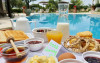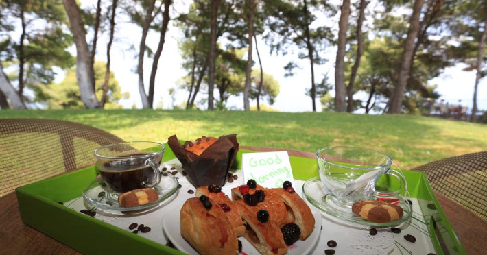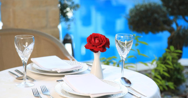 La Country Inn oaspeții au la dispoziție un restaurant care servește mâncare à la carte. Preparate din bucătăria grecească așteaptă să fie degustate în fiecare zi. Masa poate fi servită atât în interior, cît si în aer liber, pe terasă, în funcție de vreme. Oaspeţii pot avea diverse băuturi răcoritoare sau alcoolice la bar. De asemenea , în cadrul proprietății, există cafenea și snack bar ideale pentru o gustare rapidă. Pentru cei cu anumite nevoi de nutriție, Country Inn oferă meniuri pentru diete speciale.