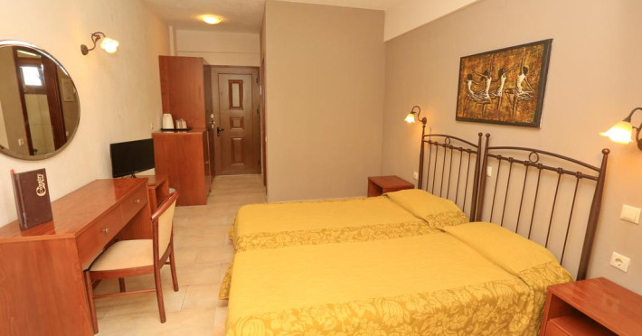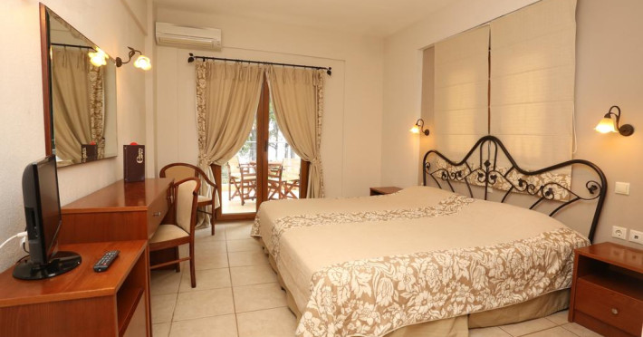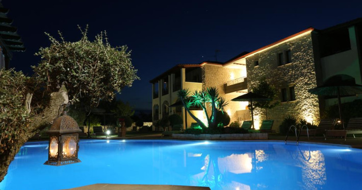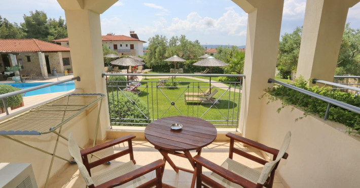 Country Inn este o proprietate de 3 stele situată în Halkidiki care oferă camere cu vedere la mare, un restaurant, o piscină în aer liber și o terasă cu șezlonguri și umbrele de soare. Proprietatea are servicii de închirieri auto. Se oferă acces gratuit la internet Wi-fi în spațiile publice. Parcarea este disponibilă la proprietate gratuit.