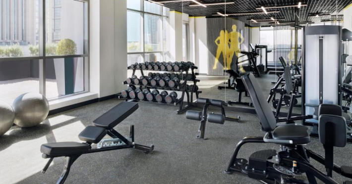 O sală de fitness cu echipamente necesare pentru o gamă variată de exerciții fizice este la dispoziția celor interesați.