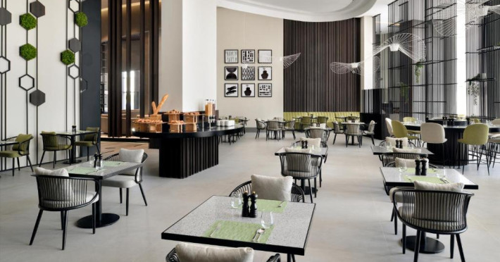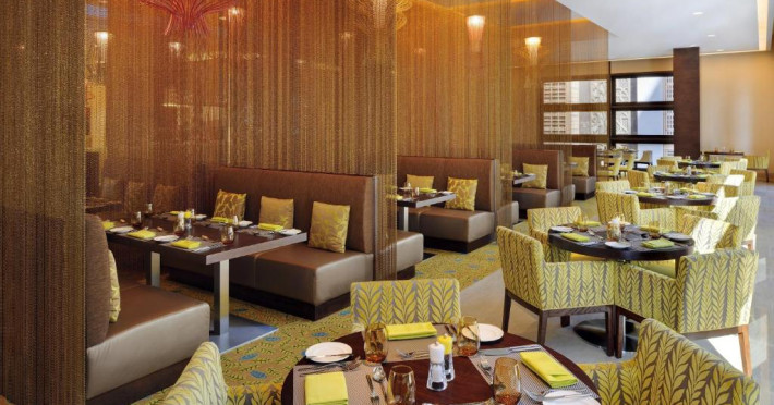 La Courtyard By Marriott World Trade Centre Dubai oaspeții au la dispoziție un restaurant care servește mâncare à la carte. Preparate din bucătăria internațională așteaptă să fie degustate în fiecare zi. Masa poate fi servită atât în interior, cît si în aer liber, pe terasă, în funcție de vreme. Oaspeţii pot avea diverse băuturi răcoritoare sau alcoolice la bar. În cadrul proprietății există și o cafenea care servește specialități din cafea și diverse delicatese.