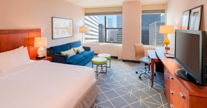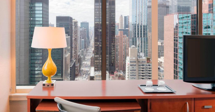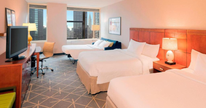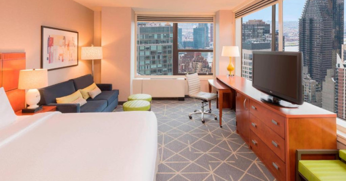 Courtyard New York Manhattan are TV cu ecran plat de 37 inch și canale prin cablu, ferestre mari și vedere orașul. De asemenea, există o zonă de relaxare și un birou mare. Oaspeții au la dispoziție room service de la restaurantele din apropiere.