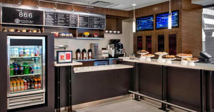 Table 866 este un restaurant cu autoservire, care oferă preparat pentru mic dejun și cafea Starbucks.
