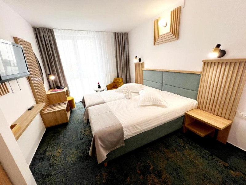 DESCRIERE CAMERE: Unitatea dispune de 248 locuri in camera duble si single. Camerele sunt dotate cu tv led, baie cu dus, internet, minibar. NOU ! 42 de camere au fost renovate si isi asteapta turistii cu conditii superioare de cazare - Camere duble SUPERIOARE