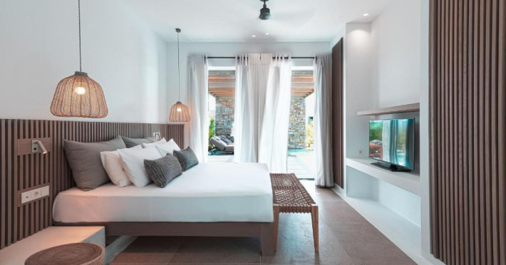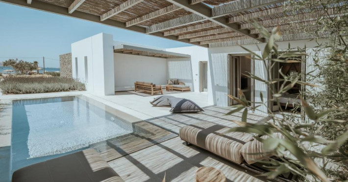 Locație excelentă pe malul mării: Cove Paros din Naousa oferă acces direct la malul mării, cu plaja Agioi Anargyroi la doar cațiva metri distanță. Oaspeții se pot relaxa pe terasa la soare sau se pot inota in piscina infinită. Proprietatea dispune de o grădină luxuriantă și o zonă de luat masa in aer liber.