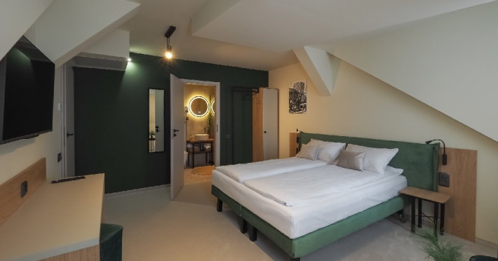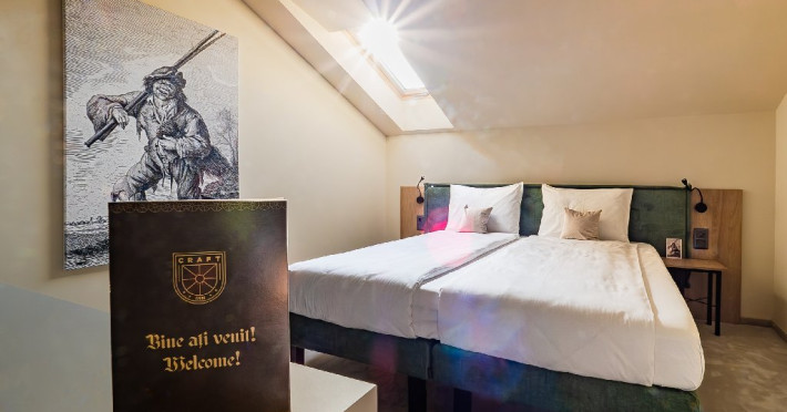 Boutique Hotelul Craft Inn a fost creat pentru a oferi o experienta unica si autentica oaspetilor ce-i trec pragul, combinand traditia mestesugurilor de odinioara cu confortul contemporan. Fiecare sejur la Craft Inn promite sa devin mai mult decat o simpla vizita intr-un hotel; este o incursiune in sufletul unui oras cu o istorie bogata. Aici, fiecare oaspete iai scrie propria pagina a povestii sale, aducand un nou suflu de viata intre zidurile vechii case. In cladirea C2 sunt cele 7 camere noi.Camera Superioara Aurarilor