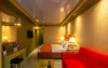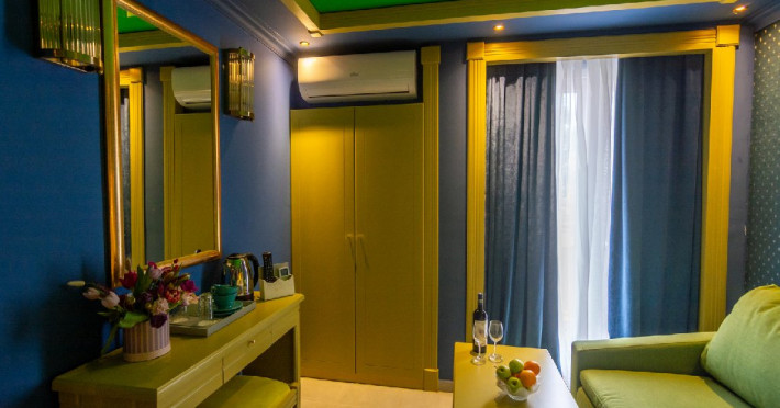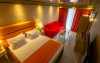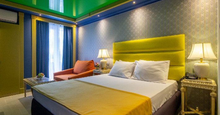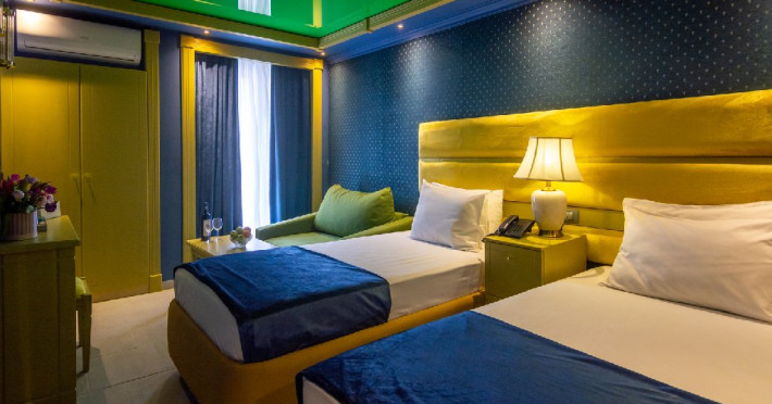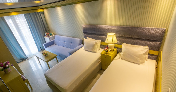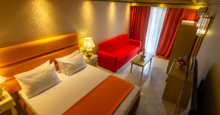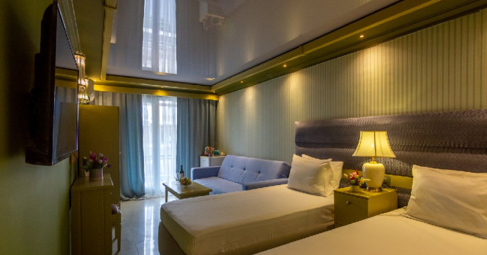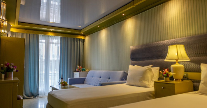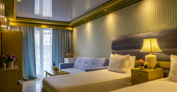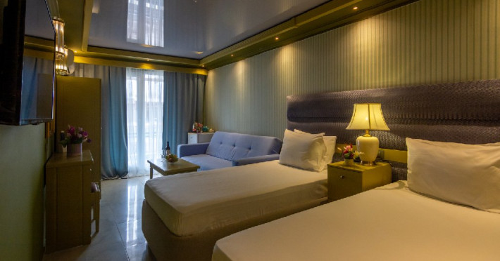 Camera standard matrimoniala sau twin a cuprinde un spatiu deschis cu o suprafata de 16 mp, cu zona pentru dormit cu un pat matrimonial sau 2 paturi twin, fotoliu extensibil sau scaun, baie cu cabina de dus si balcon.