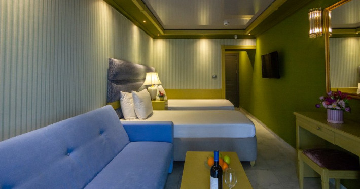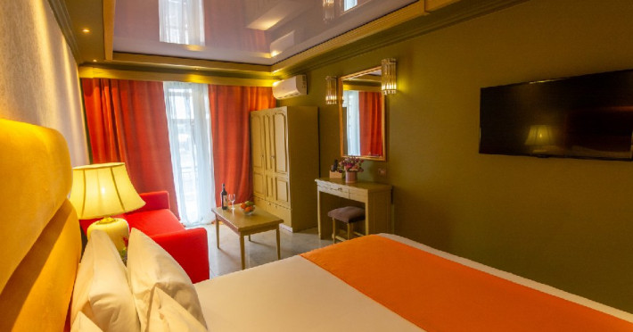 - Pentru acest tip de camera, cazarea la capacitatea maxima admisa implica utilizarea patului si a canapelei existente. Spatiul locativ nu permite adaugarea unui pat suplimentar.