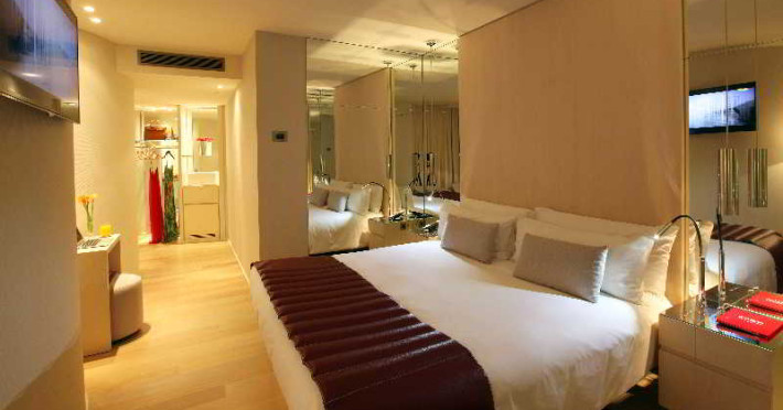 An impressive façade from 1892 adorns this elegant and avant-garde boutique hotel constructed in 2005. The air-conditioned hotel, housing 67 guestrooms, completes its unbeatable offer by providing guests with a 24-hour reception and check-out service, dynamic lounges for meetings, a quaint terrace, an exclusive lobby cocktail bar, a superb restaurant and a café. The hotel also has currency exchange facilities, cloakroom, lift access, safe, WLAN Internet access, room and laundry services and a car park. Guests can also indulge in the hotels fantastic collection of fine cigars..This designer city hotel is located in the centre of Barcelona, just 4 blocks from GaudÃs Casa Batlló, a 5-minute walk from GaudÃs La Pedrera and just 10 minutes from Plaza Catalunya and Barcelonas famous Las Ramblas district. The hotel is approximately 10 km from Barcelona International Airport..The hotel rooms, with wooden floors and furniture, complemented by claret curtains and cushions, generate a warm and intimate atmosphere. Intelligent use of space, innovative lighting and the latest technology in access controls add to the overwhelming comfort. Each room is fitted with a unique audiovisual system, offering films, games, music and Internet access. Rooms incorporate exclusive comfort, which is guaranteed through the Treca of Paris beds and the elegance of Gastón Daniela textiles, without forgetting the Tecnal windows that assure maximum soundproofing. All rooms are fitted with en suite bathrooms including a shower, bathtub and hairdryer. Other in-room amenities include a direct dial telephone, satellite TV, minibar, double beds, safe and a balcony or terrace. In the interest of comfort and convenience, all rooms come with air conditioning and heating as standard..The hotel serves the best cuisine in the city, which guests can enjoy in the hotel restaurant âGaig (awarded one Michelin star)..Within the hotel grounds guests will find a swimming pool with sun loungers, parasols and a sun deck. At the nearby sandy beach guests can take advantage of sun loungers and parasols for an extra charge..Parking is available for EUR 30 per night. Room service is on offer between 11 pm and 1 am (cold food)..American Express, Diners Club, MasterCard and VISA are all accepted as methods of payment.Datorita dinamicitatii domeniului disponibilitatea ofertelor se modifica de la un moment la altul. De aceea ofertele sunt valabile in limita locurilor disponibile. Agentia nu este responsabila pentru eventualele neconcordante care pot aparea intre informatiile privind tarifele si alte detalii din site si informatiile primite in agentie. In aceste cazuri vor avea prioritate, intotdeauna, informatiile primite in agentie.
