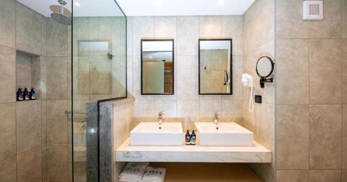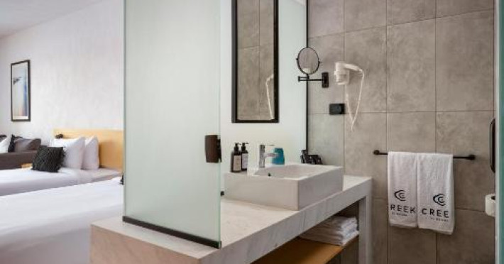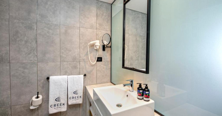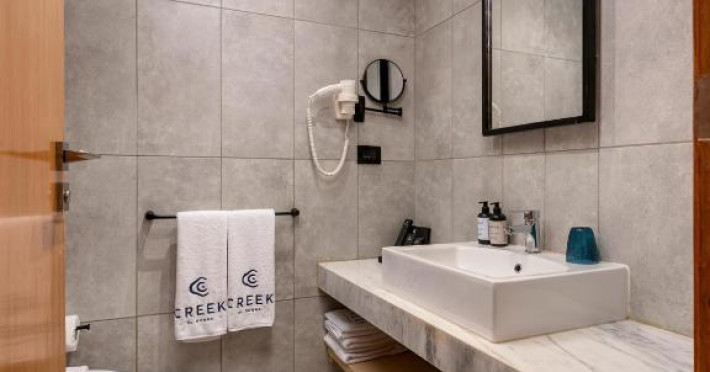 Camerele de la acest hotel includ climatizare, o zonă de relaxare, un televizor cu ecran plat cu canale prin satelit, o cutie de valori și o baie proprie cu duș, articole de toaletă gratuite și un uscător de păr. Fiecare cameră este dotată cu o ibric electric, iar unele camere speciale sunt echipate cu o chicinetă cu un frigider, un cuptor cu microunde și un minibar. La Creek Hotel and Residences El Gouna, toate camerele sunt dotate cu lenjerie de pat și prosoape.