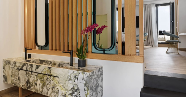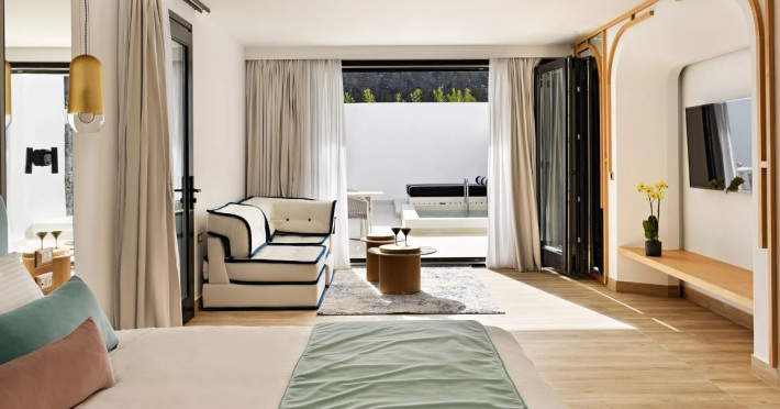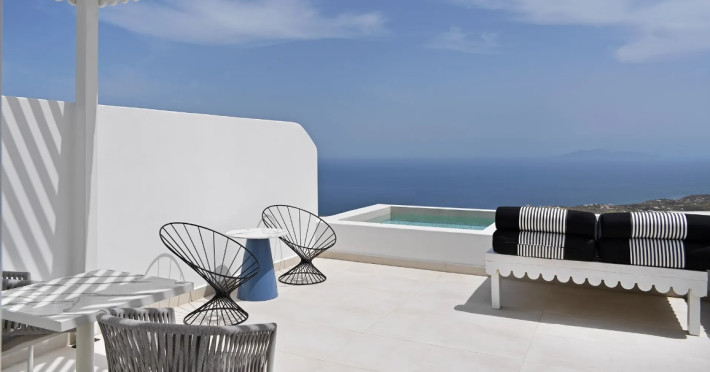 Cresanto, a complex of luxury suites in the tranquil area of Imerovigli that meets and exceeds the highest of standards for luxurious holiday accommodation, a hospitality proposal that creates a new state of holidays in this amazing destination. Offering consummate seclusion and privacy immersed in superb natural surroundings, along with exclusive comfort and services one would not traditionally expect from a suite complex, Cresanto epitomizes the fabled Greek hospitality combined with a world-class holiday experience. Welcome to Cresanto, where all your holiday desires are met to perfection and beyond. Starting from the accommodation proposals, Cresanto offers seven suite types, all featuring hand-picked luxury amenities, exquisite design and outdoor hot tubs or plunge pools with a choice of garden or sea views. Gastronomy wise, our premises include a lavish breakfast area with a live cooking station, a gourmet restaurant serving modern Greek and Mediterranean creative cuisine, and a well-rounded bar, all with sophisticated indoor and outdoor spaces. The focal point of the complex, the main swimming pool boasting lush lounging facilities and an eclectic pool bar along with gorgeous views to the eastern side of the island and the sea, complemented by manicured gardens and sleek aesthetics. In addition, a lavish spa featuring personal treatment rooms and a fully equipped gym in a prominent location of the complex overlooking the sea, as well as conference and event facilities for up to 60 guests. The spa premises features hydrotherapy suites, massage tables, a steam room, a Jacuzzi, and a cold plunge pool, where our team of wellness practitioners and spa experts will introduce you to a world of holistic pampering with palpable results to your wellbeing. Fitness Center. Total 33 rooms. Pets are not allowed.