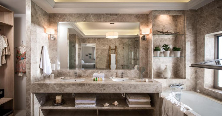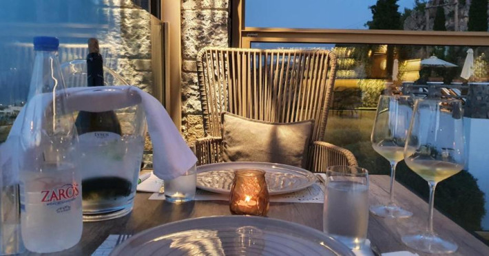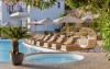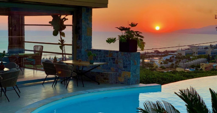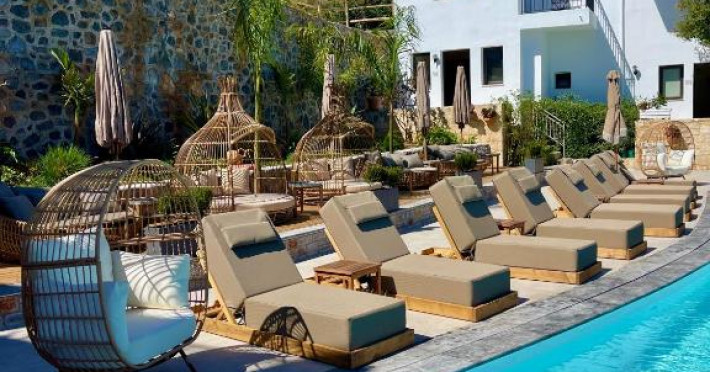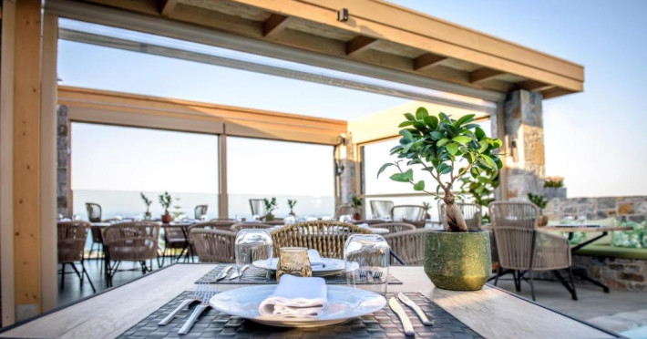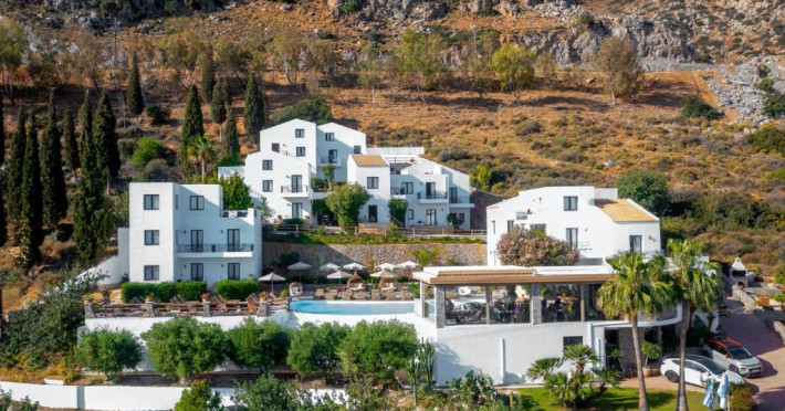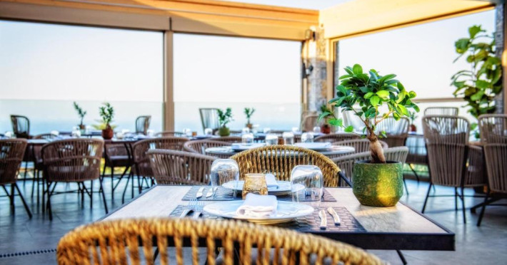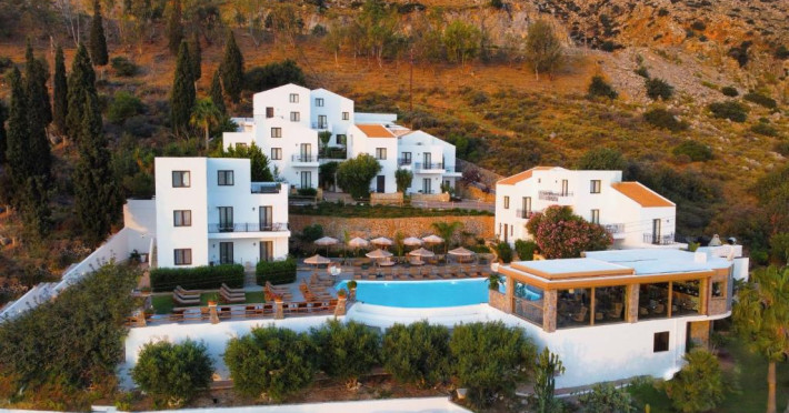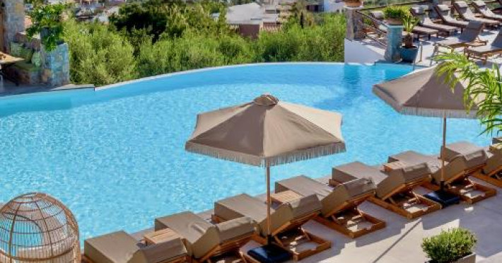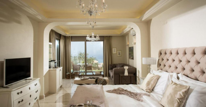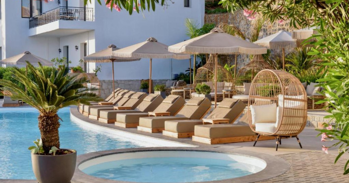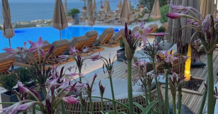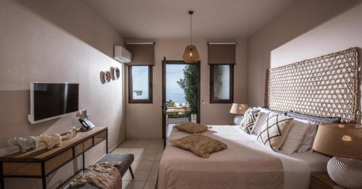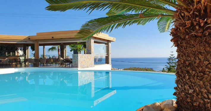 Camerele spațioase sunt decorate in nuanțe mediteraneene și dispun de balcoane private cu vedere spre mare sau grădină. Piscina infinity cu șezlonguri și zonă de lounge oferă un cadru perfect pentru relaxare, in timp ce restaurantul à la carte servește specialități grecești autentice și preparate internaționale.