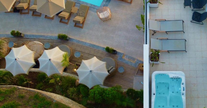 Creta Blue Boutique Hotel din Hersonissos oferă o experiență exclusivistă cu vedere panoramică asupra Mării Egee. Poziționat strategic pe o colină liniștită, acest boutique hotel pentru adulți imbină arhitectura tradițională cretană cu eleganța modernă.