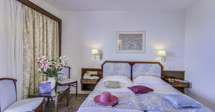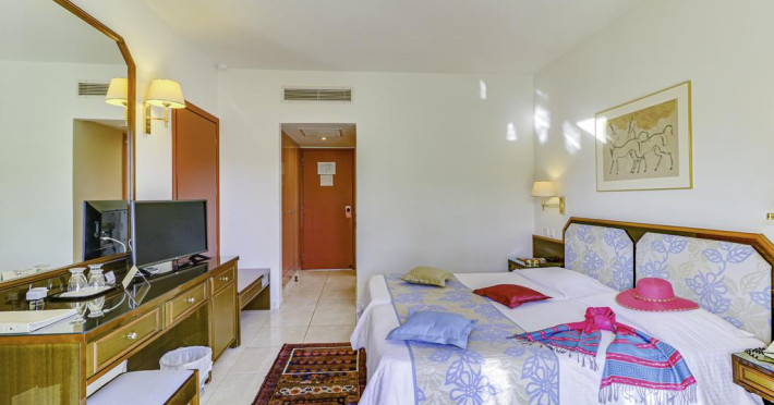Sunt disponibile 324 camere. Camerele de la Creta Royal Hotel sunt dotate cu aer condiționat, Tv cu canale prin satelit și seif. Oaspeții au la dispoziție serviciul de room service pentru a servi masa sau diverse băuturi. În camere există baie cu cadă sau duș ce are în dotare foehn și articole de toaletă gratuite. Unele camere au balcon cu vedere la mare, unde oaspeții pot admira apusul sau răsăritul soarelui. Oaspeții au acces gratuit la serviciul Wi-fi în camere. Curățenia in cameră se face zilnic. Proprietatea oferă camere pentru nefumători.