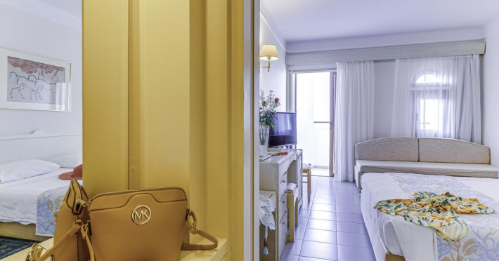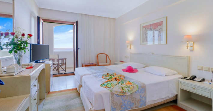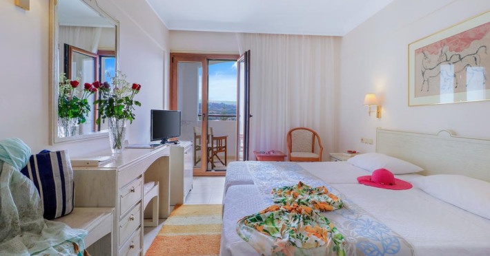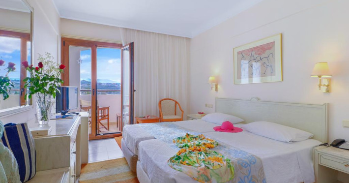 Sunt disponibile 323 camere. Fiecare cameră dispune de cană pentru prepararea apei calde. Oaspeții pot solicita serviciul de room service pentru a servi masa sau diverse băuturi. Camerele confortabile de la Creta Star au pardoseală de gresie/ marmură, aer condiționat, Tv cu canale prin satelit și seif. Unele camere au balcon cu vedere la mare, unde oaspeții pot admira apusul sau răsăritul soarelui. În camere există baie cu cadă sau duș ce are în dotare foehn și articole de toaletă gratuite. Oaspeții au acces gratuit la serviciul Wi-fi în camere. Curățenia in cameră se face zilnic. Toate camerele spațioase de la Creta Star au zonă de relaxare. Fiecare unitate de cazare are frigider. Proprietatea oferă camere pentru nefumători.