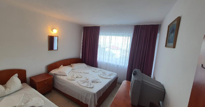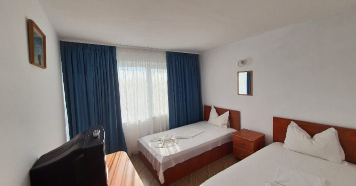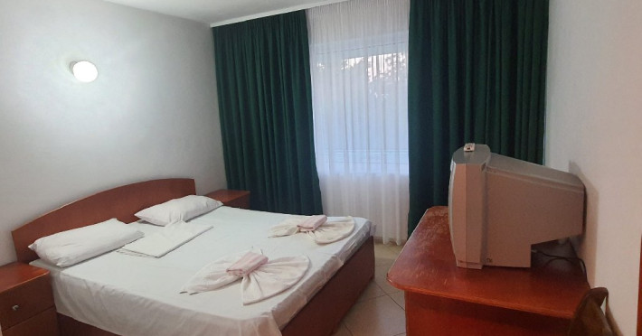 Camerele duble sunt dotate cu TV, frigider, plase de tantari, podele de gresie si baie proprie cu cadita de dus si cu apa calda nonstop. Unele camere au balcon, insa repartizarea camerelor se face la hotel, in momentul cazarii. Suprafata 14 mp.