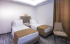 Unele camere au balcon cu vedere la mare sau la piscină. Camerele confortabile de la Cronwell Platamon Resort au pardoseală de gresie/ marmură, aer condiționat, Tv cu canale prin satelit și seif. Fiecare cameră dispune de minibar și cană-fierbător. Oaspeții pot solicita serviciul de room service pentru a servi masa sau diverse băuturi. În camere există baie cu cadă sau duș ce are în dotare foehn și articole de toaletă gratuite. Oaspeții au acces gratuit la serviciul Wi-fi în camere. Curățenia in cameră se face zilnic. Proprietatea oferă camere pentru familie cu o suprafață mai mare și un număr mai mare de paturi față de cele standard. Se pot rezerva de asemenea camere pentru nefumători.