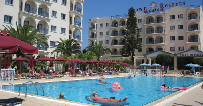 Crown Resorts Elamaris se află la 300 de metri de plaja cu nisip din Pernera si are o piscină mare in aer liber, un restaurant și 2 baruri. Oferă unităti de cazare in sistem self-catering, cu balcon privat, și este aproape de taverne locale, baruri și magazine.