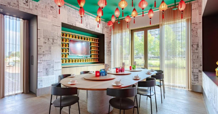 Oaspeții se pot bucura de bucătăria asiatică in noul restaurant original Happyhappyjoyjoy. Acesta oferă o foarte mare varietate de mancăruri stradale, dim sum, rendang și curry.