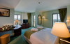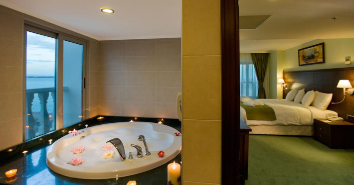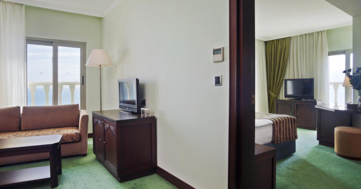 Camerele luminoase de la Crowne Plaza sunt dotate cu mochetă, aer condiționat, Tv cu canale prin satelit și seif. Unele camere au balcon cu vedere la mare sau la grădină. Fiecare cameră dispune de minibar și cană-fierbător. Oaspeții pot solicita serviciul de room service pentru a servi masa sau diverse băuturi. În camere există baie cu cadă sau duș, foehn, articole de toaletă gratuite, precum și halate de baie și papuci. Oaspeții au acces gratuit la serviciul Wi-fi în camere. Curățenia in cameră se face zilnic. Anumite camere au zonă de relaxare cu canapea și cadă cu hidromasaj care asigură un plus de confort și răsfăț. Proprietatea oferă camere pentru nefumători.
