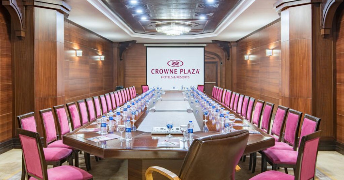 La Crowne Plaza oaspeții pot servi masa în stil bufet. Preparate din bucătăria internațională și turcească așteaptă să fie degustate în fiecare zi la micul dejun, prânz și cină. 3 baruri, dintre care unul la piscină și unul pe plajă, sunt disponibile cu o ofertă variată de băuturi răcoritoare și alcoolice. Pentru cei cu anumite nevoi de nutriție, Crowne Plaza oferă meniuri pentru diete speciale.