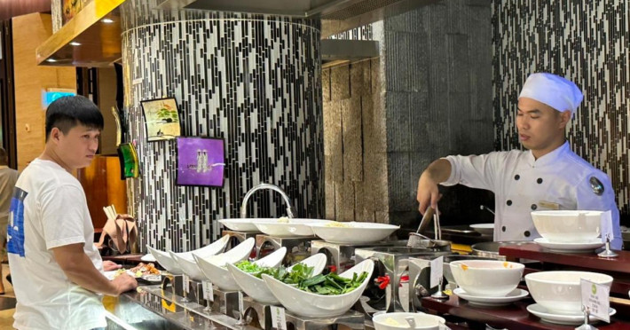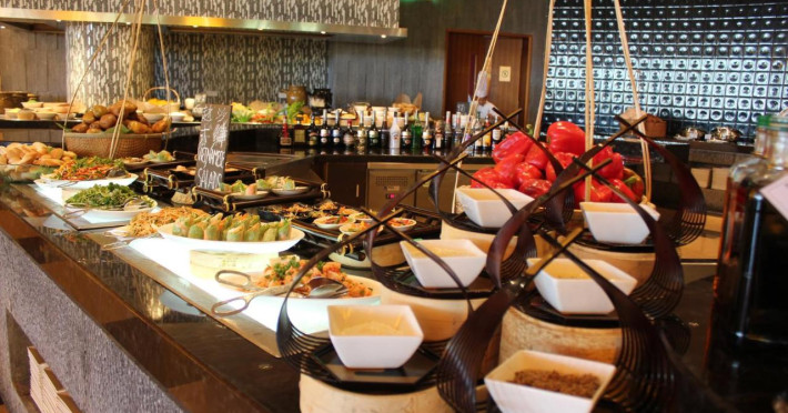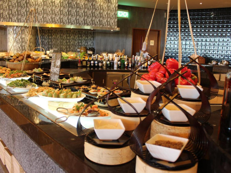 Opțiunile de luat masa includ un restaurant deschis pe tot parcursul zilei, care servește zilnic micul dejun tip bufet, sau restaurantul chinezesc Hai Gang, care servește mancăruri din provincia Canton. De asemenea, este disponibil un lounge in hol.